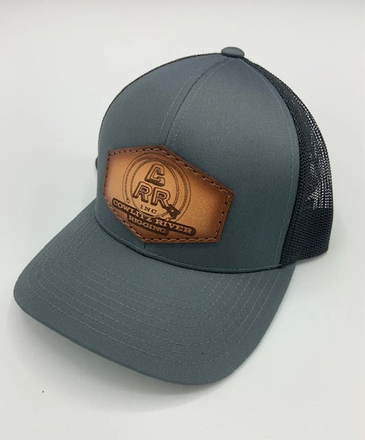 Cowlitz River Rigging Gray & Black CRR Logo Leather Patch Hat Rugged Work Wear
