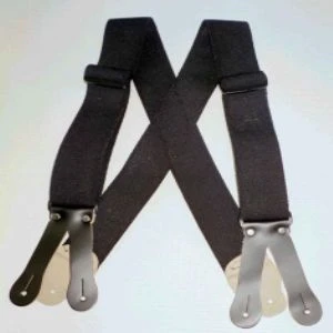 These Logger Suspenders are made of 1 1/2 ” wide heavy duty elastic. Non-slip slides and loops of Acetol and 6 oz. leather button on ends are combined with our durable heavy duty elastic. Made in either the X-BACK or Y-BACK (shown). Leather button ends are available along with the loop back. For accurate sizing, measure from right front to left back